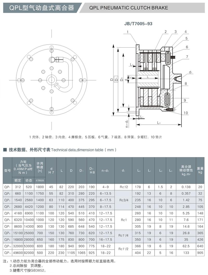 QPL型氣動(dòng)盤(pán)式離合器具有制動(dòng)和傳遞扭矩大、制動(dòng)離合迅速、結構簡(jiǎn)單、工作可靠、維護方便等優(yōu)點(diǎn),廣泛應用于冶金、起重、石油鉆采、造紙以及木材加工等行業(yè)中。