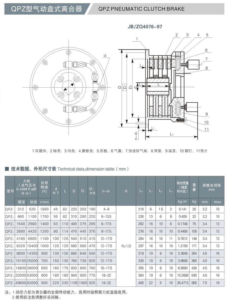 QPZ全盤(pán)式制動(dòng)器氣動(dòng)盤(pán)式離合器